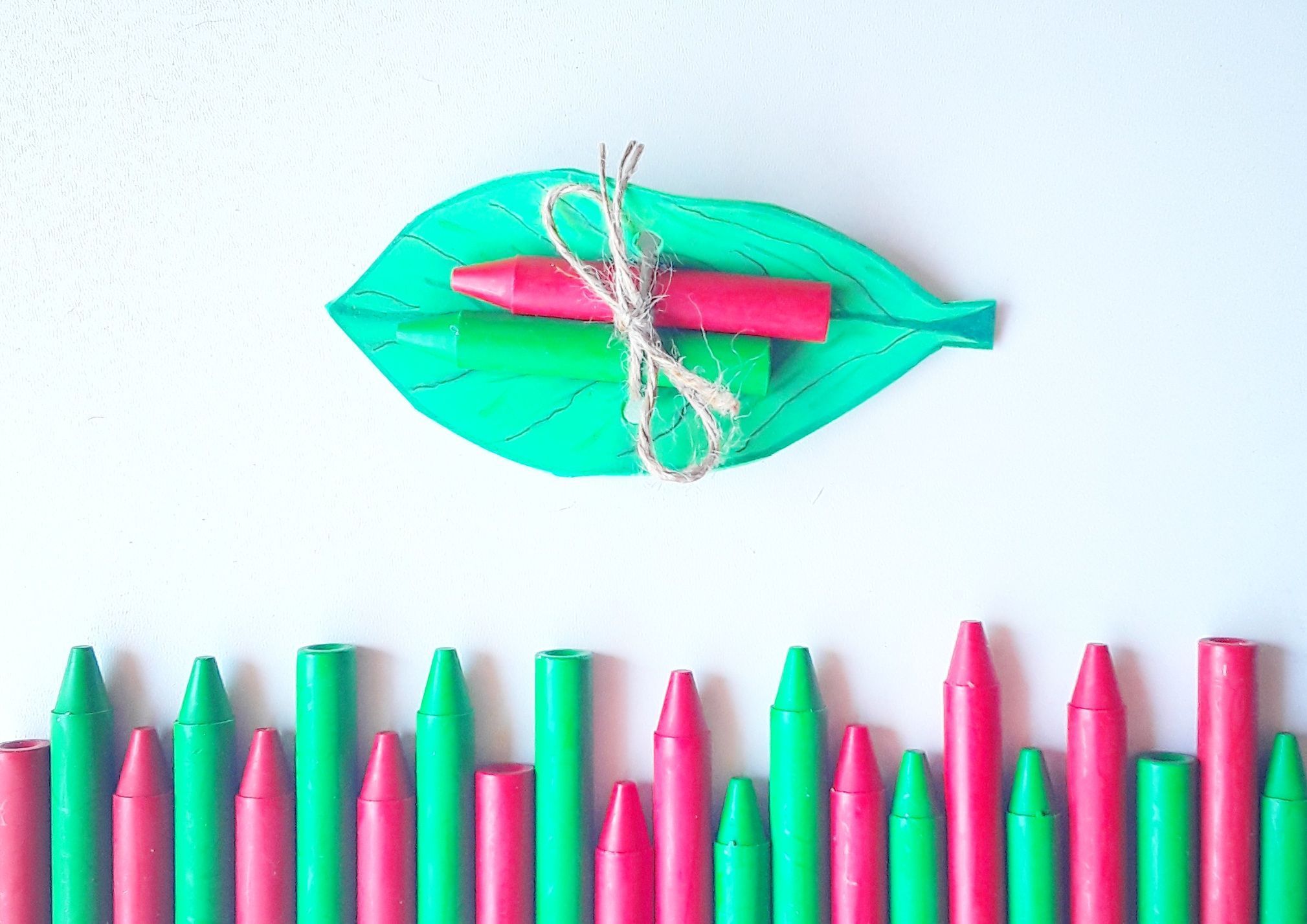Hoja de goma Eva con lápices de cera.
