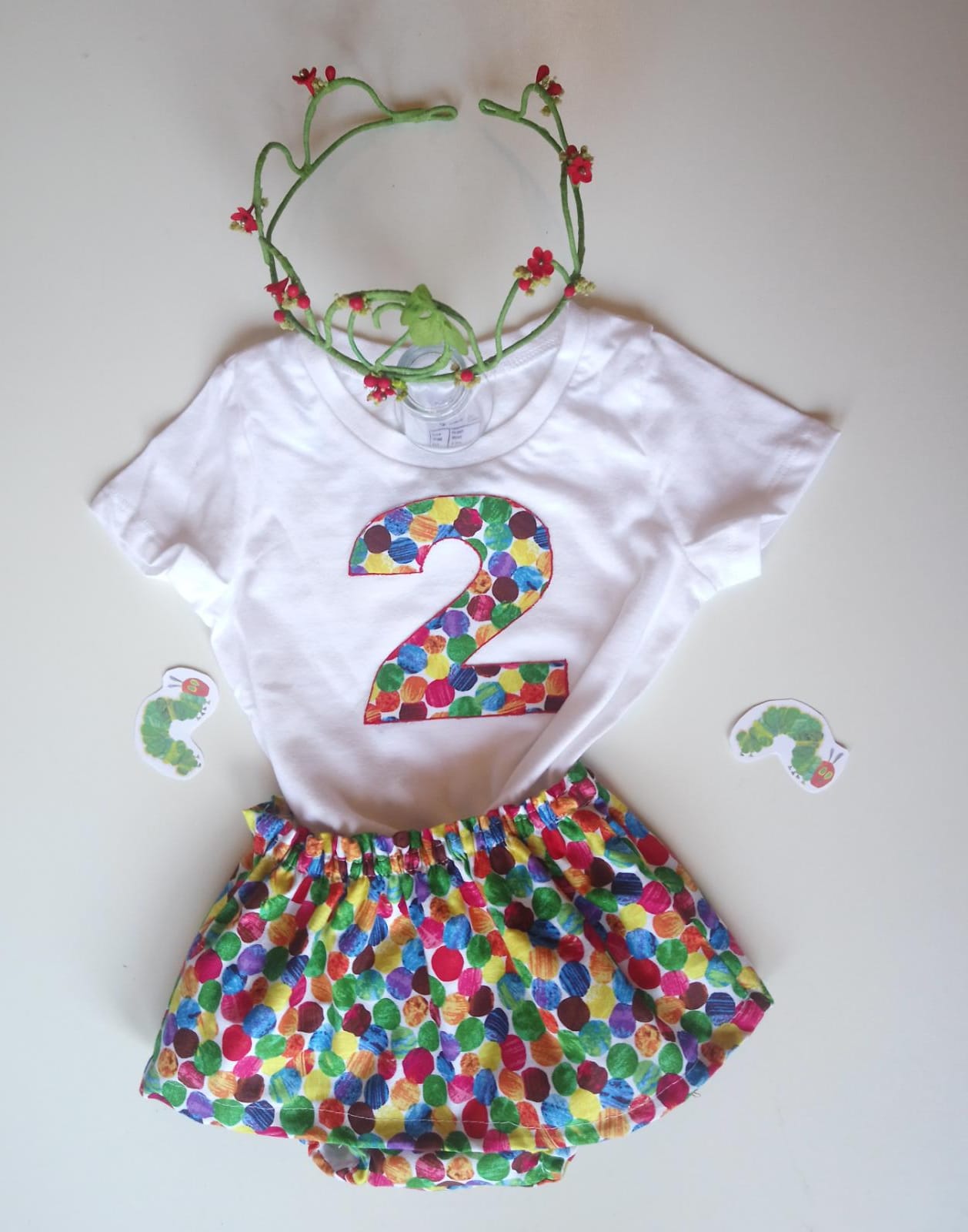 Cubrepañal con volante, camiseta personalizada y corona de Blue Kahlo.