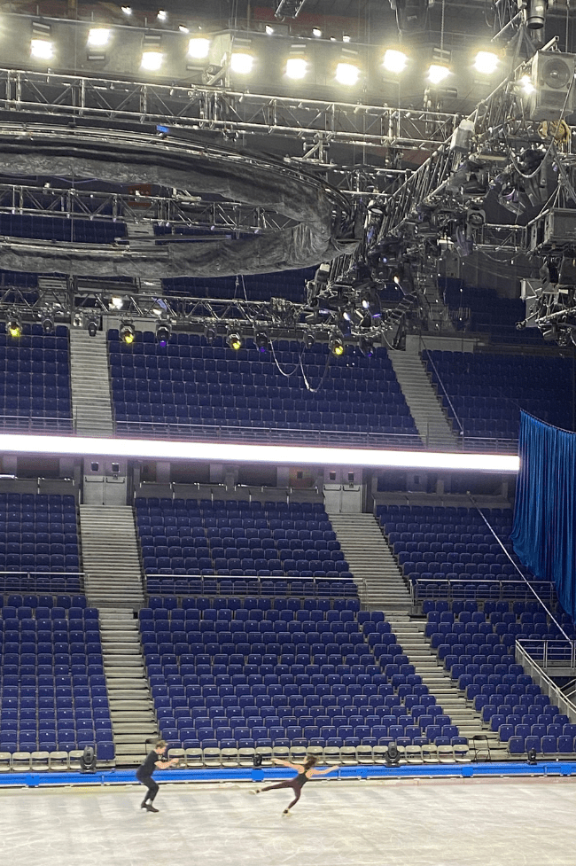 Nos invitaron a Disney On Ice en Madrid pero también hicieron un pequeño recibimiento para creadores de contenido, bloggers e influencers. Primero vimos el calentamiento y práctica de los patinadores. Fue muy emocionante estar en el Wizink center vacío, solo observando (y flipando) con los artistas.