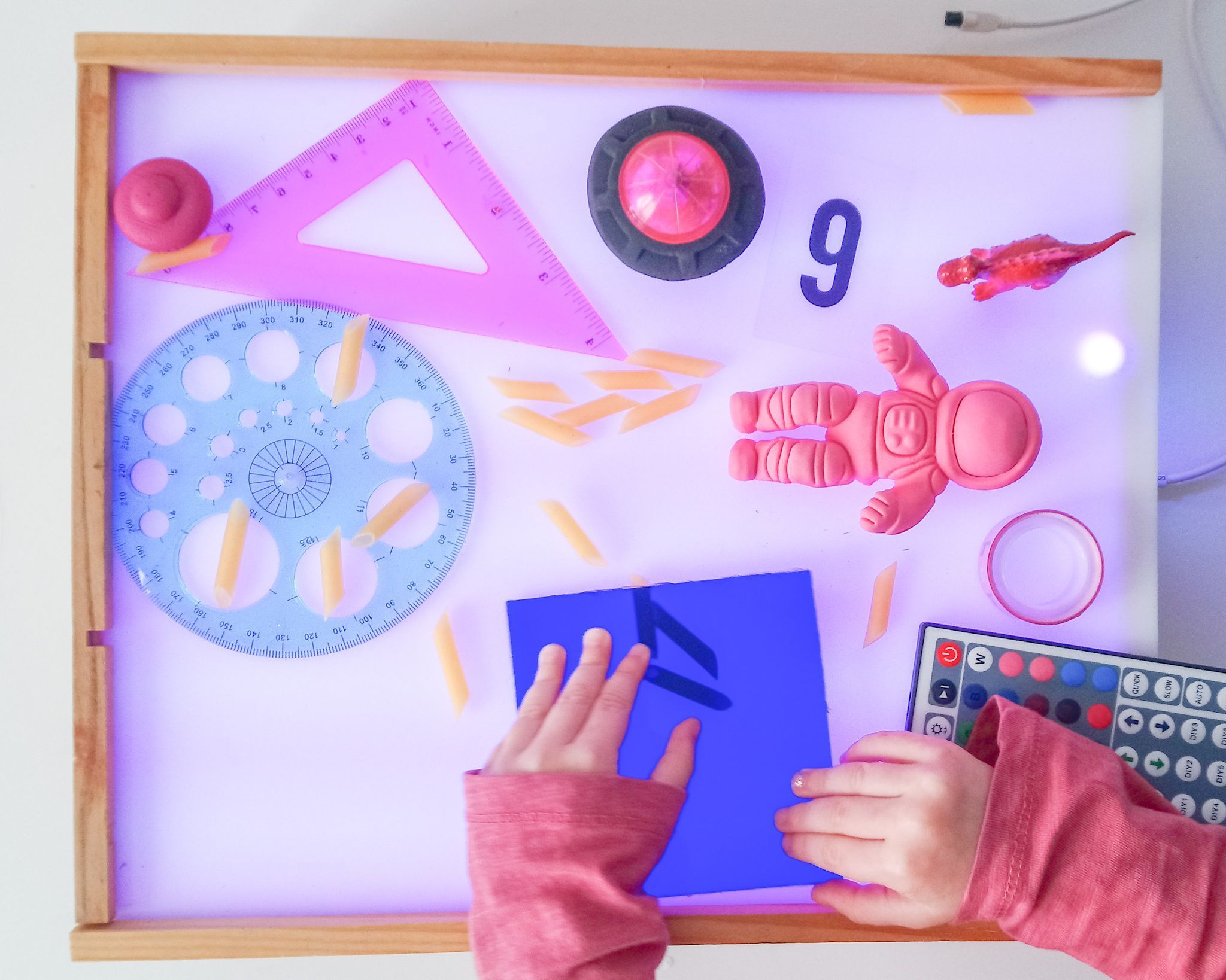 Caja de luz con diversos materiales.