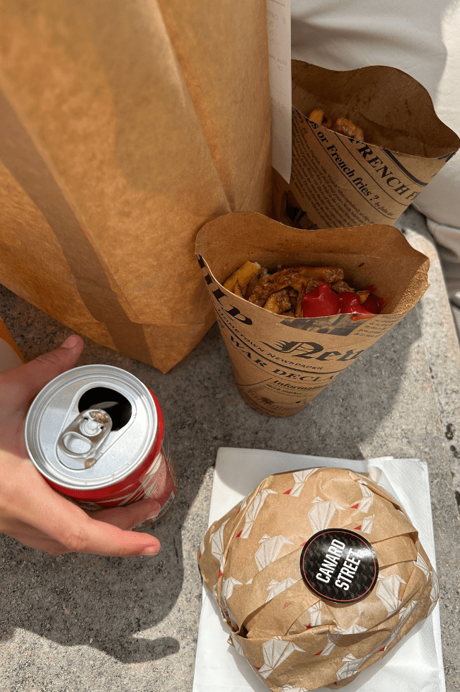 Menú hamburguesa de pato con patatas y refresco, 10,90euros